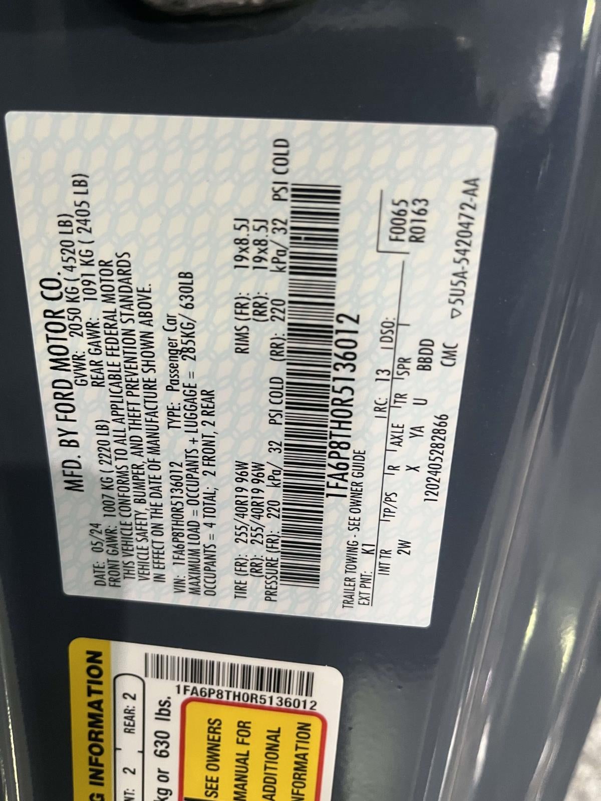 - Vehicle Name: Ford Mustang